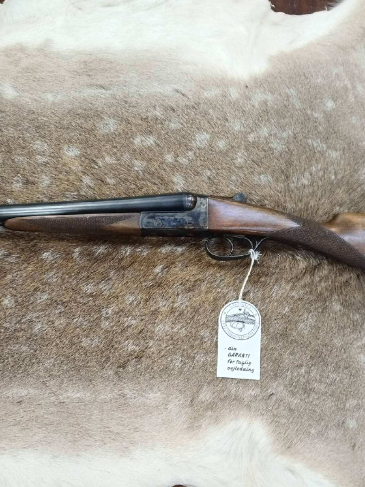 Våbnet er pænt og velholdt, med få gravering og engelsk skæfte, våbnet gennemgået hos egen våbensmed.